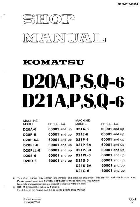 The Komatsu D20 & D21 Series Bulldozer Operation & Maintenance Manual provides essential information for safe operation and proper maintenance of multiple machine models.